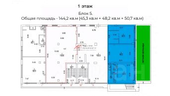 Помещение 144,2 (45,3 кв.м + 48,2 кв.м + 50,7 кв.м) м2 располагается на 1 этаже, открытая планировка, отдельный вход с фасада и со двора, высота потолка 3,5 м, витринные окна по фасаду. Электрическая мощность 85 кВт. Летняя веранда 90 м2. В помещении выполнен ремонт (за выездом арендатора). Парковка перед фасадом. Разгрузка с двора. Место для размещения рекламы на фасаде.