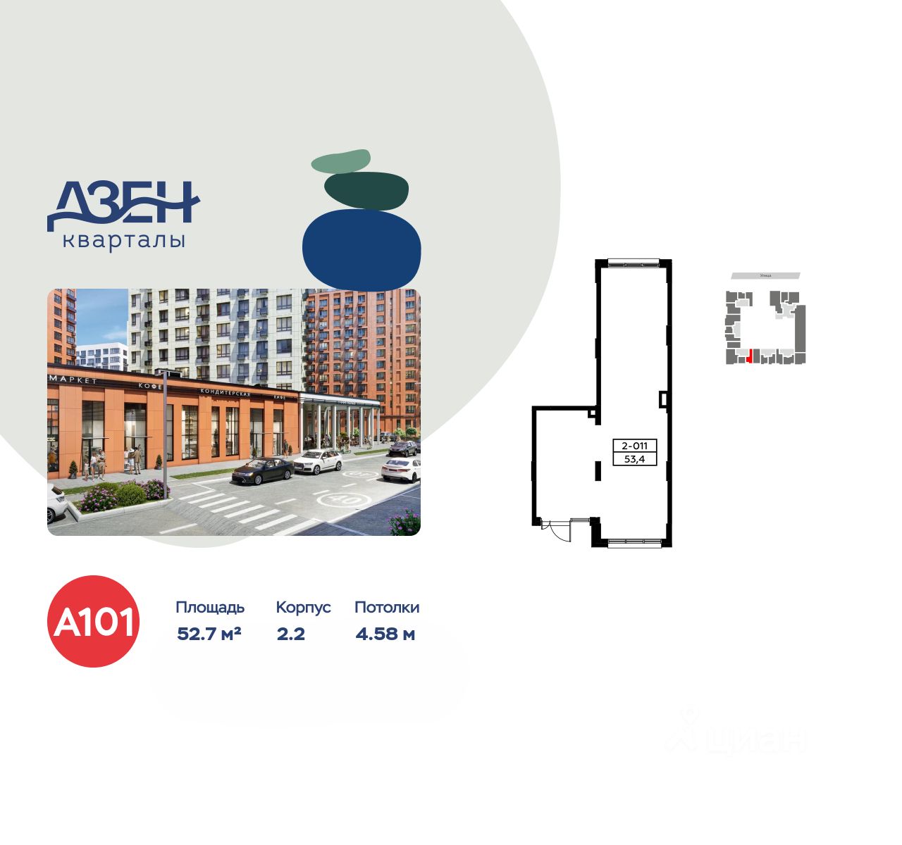 Сдается помещение площадью 52.70. на 1-м этаже ЖК "Дзен-кварталы".