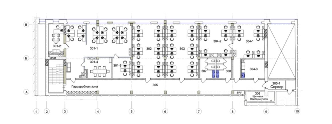 - Планировка: Эффективная смешанная планировка с антресолями позволяет оптимально использовать площадь для разных функциональных зон — как открытых рабочих мест, так и отдельных кабинетов.