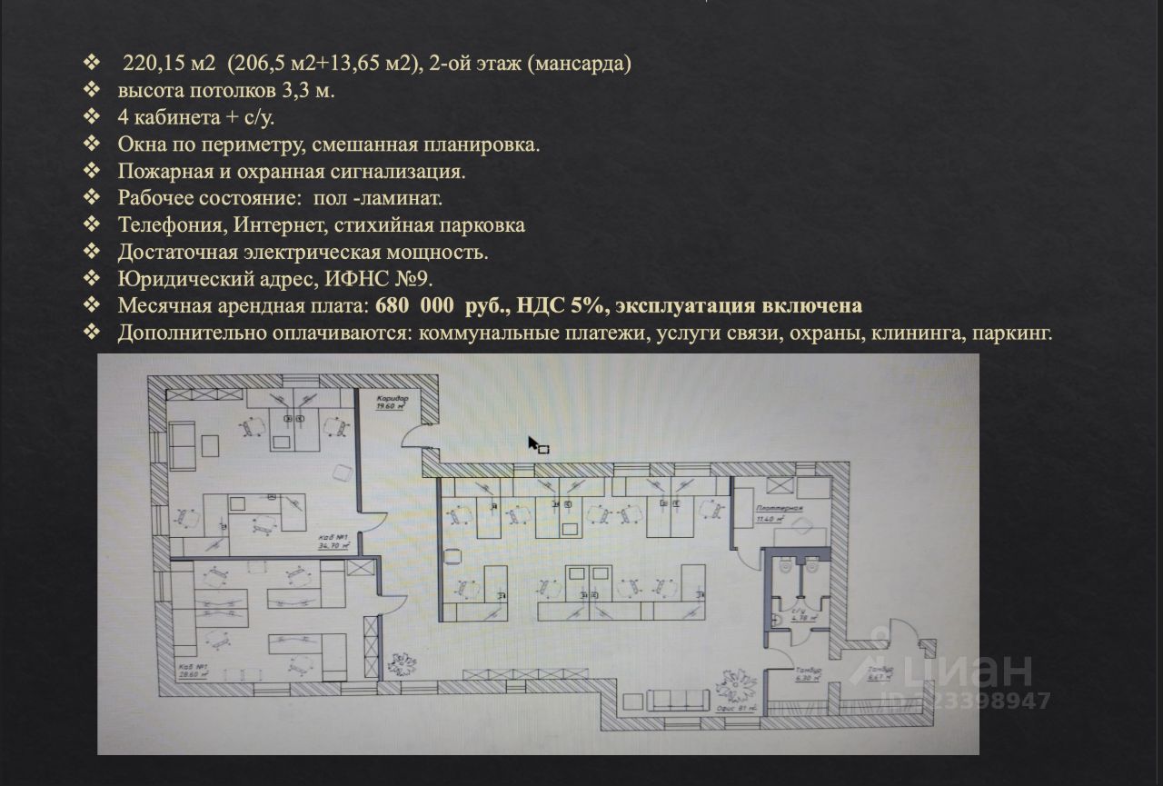 Дополнительно оплачиваются: коммунальные платежи, услуги связи, охраны, клининга, паркинг.