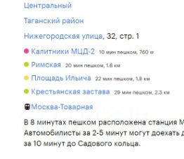 Выигрышное расположение: 300 метров до съезда на ТТК, 2,5 км до Садового кольца, вблизи 3 станции метро: Таганская, Римская, Площадь Ильича, в 8 минутах ходьбы ж/д станция Калитники и станция МЦД Калитники.