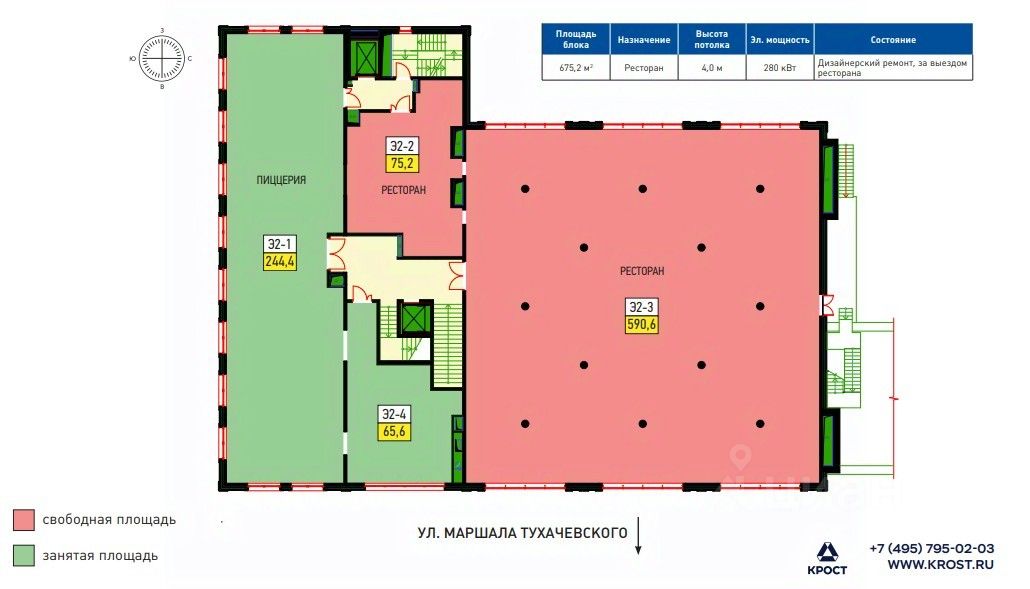 Помещение в аренду для размещения ресторана, площадью 675,2 кв.м от собственника на 2 этаже Union centre, по адресу: г. Москва, Пр.Маршала Тухачевского, д.41к1