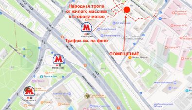 Расположенное на пешеходной тропе от жилого массива в сторону метро