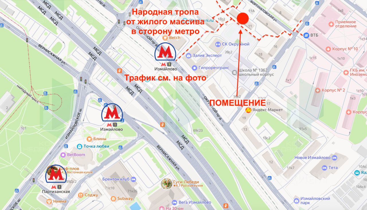 Расположенное на пешеходной тропе от жилого массива в сторону метро