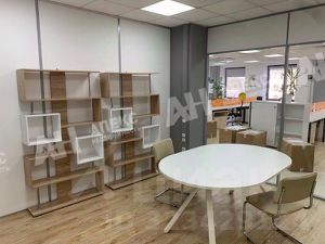 Объект представляет собой блок смешанной планировки, включающий зону ресепшн, две open-space зоны, несколько изолированных кабинетов, переговорные комнаты и санузлы.