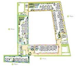 В офисе представлены рабочие зоны с фиксированными и гибкими местами в формате open space, а также отдельные офисы для команд разного размера. Для встреч и мероприятий предусмотрены полностью оборудованные переговорные комнаты и конференц-зал. Резиденты офиса могут воспользоваться шумоизолированными телефонными будками для конфиденциальных звонков, зонами отдыха, а также кухнями, оснащёнными всем необходимым.
