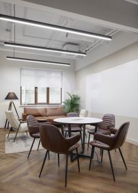 Просторные рабочие зоны и приватные кабинеты, которые создают комфорт и уют для эффективной работы. Современные переговорные комнаты с оборудованием, идеально подходящие для встреч, совещаний и презентаций. Уютные лаунж-зоны и стильное кафе, где можно отдохнуть, провести неформальную встречу и насладиться чашкой кофе. Высокоскоростной интернет и полная офисная инфраструктура для бесперебойного рабочего процесса.