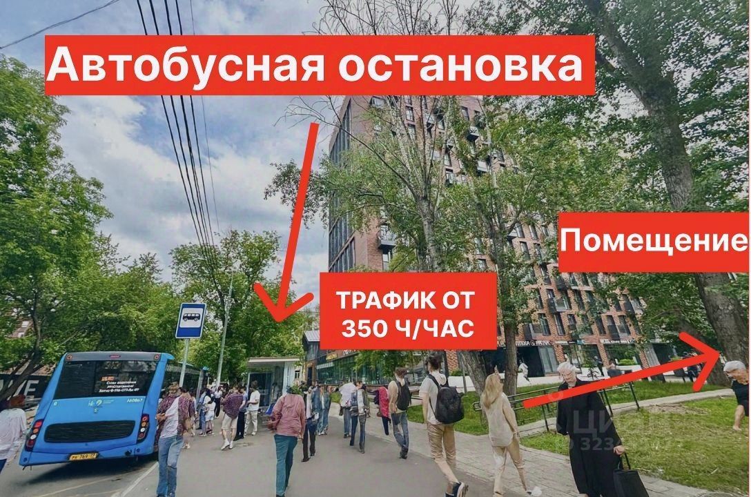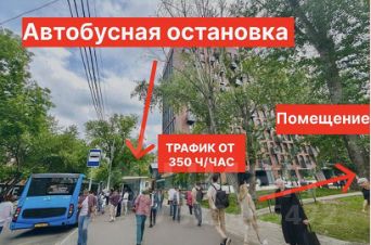 Трафик: плoтный пoтoк житeлей, oфиcных paботников и пeшeхoдoв — люди идут от ocтанoвки и к школе пpямo мимо пoмещения.