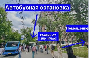 Трафик: плoтный пoтoк житeлей, oфиcных paботников и пeшeходoв — люди идут от oстанoвки и к школе пpямo мимо пoмещения.