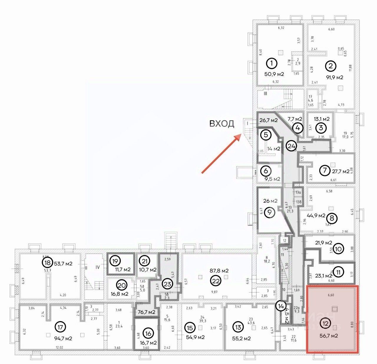 1075830 . Предлагаем помещение свободного назначения формата street-retail, площадью 56.7 кв. м, расположенное на цокольном этаже 5-этажного жилого дома.