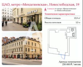 Помещение в 70 метрах от станций метро "Менделеевская" и "Новослободская",
