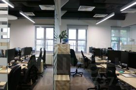 Офис с отделкой, смешанной планировкой, на 20 рабочих мест. В аренду включены: комплектация офисной мебелью и бытовой техникой в кофе-зонах, эксплуатация инженерных систем и мест общего пользования, коммунальные платежи, интернет, ежедневный клининг. Приточно-вытяжная вентиляция, центральная система кондиционирования. В наличии наземная парковка (36202 руб. в месяц м/место).