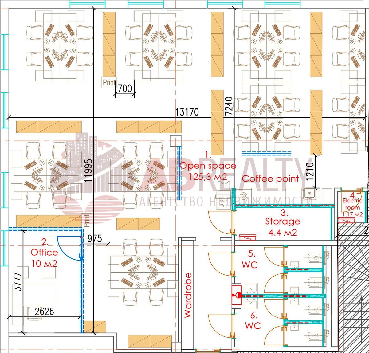 162 кв.м.: 1 этаж. Готовый офис на 25-30 рабочих мест.