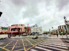 Мега интенсивный пешеходный трафик, несколько выходов из метро и пешеходный переход.
