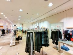 В ТЦ магазины одежды с разными брендами.
