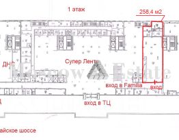 Вадим. ФОТО и ВИДЕО соответствуют. Торговая площадь в ТЦ Петровский на 1-й линии Можайского шоссе. ТЦ является стилобатом жилого дома. Большой пешеходный и автомобильный трафик. Вокруг жилой массив. Перед ТЦ остановка общественного транспорта. Вывеска на фасаде. Витринные окна. В ТЦ сетевые арендаторы: Спортмастер, DNS, Лента, KFC, Familia, 4 лапы. Парковка напротив входа в ТЦ (1й час - 50р). График работы ТЦ с 10.00 до 22.00. Въезд автомобилей для погрузки-разгрузки на -1 этаж, подъемник и грузовой лифт (1,6т). Под продукты и общепит не рассматривается. Предлагаемая площадь: 1-й этаж 258,4 м2. Преимущественно открытая планировка. Ремонт за выездом арендатора. Приточно-вытяжная вентиляция, кондиционирование, сплинкерная система пожаротушения, автоматическая система оповещения и дымоудаления. Арендная плата: 800 000 руб./мес. вкл. НДС и эксплуатацию. К арендной плате % с товарооборота, величина % обсуждается индивидуально. Отдельно оплачиваются К/У. Предоплата 1 месяц. Депозит 1 мес. Договор от 11 месяцев до 3-х лет. Арендные каникулы на заезд обсуждаются. Налоговая 31.