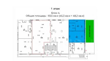 Предлагаемая площадь: 1-й этаж 45,3 м2.
