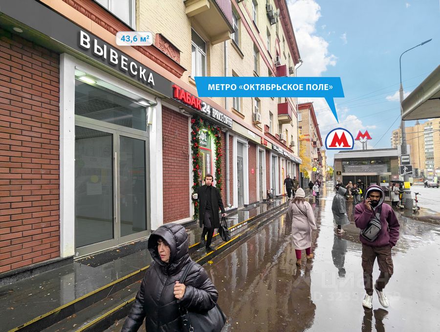 Помещение находится на первом этаже дома, в шаговой доступности от метро "Алексеевская" - менее минуты пешком. Отдельный вход c первой линии. Место для размещения вывески. Помещение расположено в крупном сложившемся жилом районе с высокой плотностью застройки и развитой инфраструктурой. В окружении находятся торгово-развлекательные центры (ТРЦ) "Дарья", "Пятая Авеню" и "Пассаж Октябрьское Поле", ЖК "Rakurs", "Театральный квартал" и "Mypriority Мневники", деловой центр "Маршал", универмаг "МЕТА", гостиница "Ibis Москва Октябрьское Поле", МГУТУ им. К. Г. Разумовского, центр культуры и искусств Щукино.