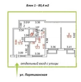 БЕЗ КОМИССИИ! Жилой дом. Сдаётся блок (4 комнаты, с/у) на первом этаже площадью 83 кв.м с отдельным входом с улицы. Стандартная отделка.НДС включен. Партизанская улица, 22, 7 минут пешком от метро Молодежная.
