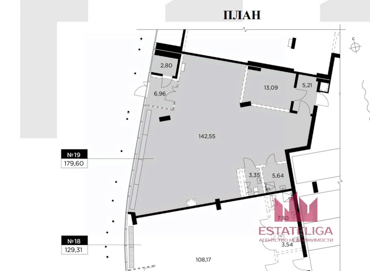 Помещение 159.6 м2 располагается на 1 этаже, открытая планировка, два выхода (один с парковки один со стороны набережной).