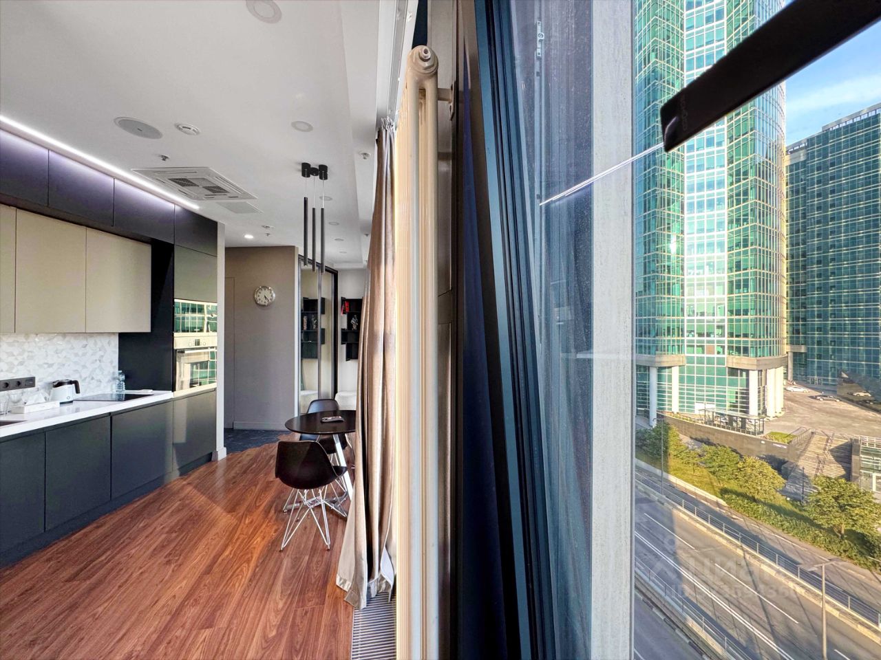 Офис расположен в одном из самых престижных офисных комплексов Москвы.На фото предлагаем оценить потрясающие панорамные виды на город и Сити. Такой вид создает вдохновляющую атмосферу для сотрудников и посетителей.