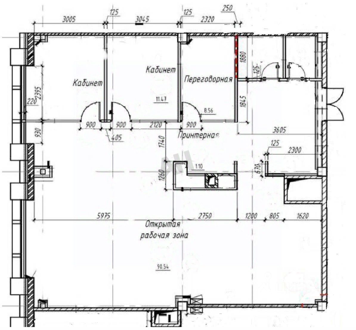 Помещение состоит из зоны ресепшн, 3х кабинетов, опенспейса для сотрудников, 2х подсобных помещений.