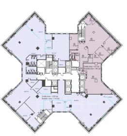 В блоке есть рабочая зона open space, кухня, санузлы, серверная.