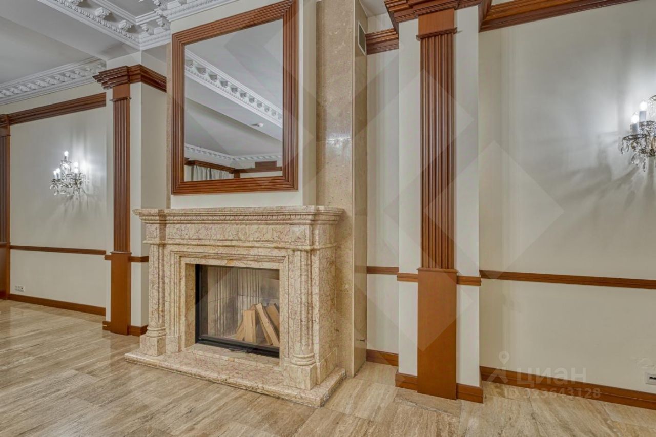 в процессе создания интерьера применялись такие материалы, как мрамор и натуральное дерево, некоторые элементы выполнены в технике ручной ковки. Одно из помещений оформлено под каминный зал.