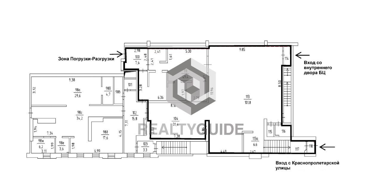 Помещение на цокольном этаже в бизнес-центре. С отделкой. Состояние за выездом арендатора.