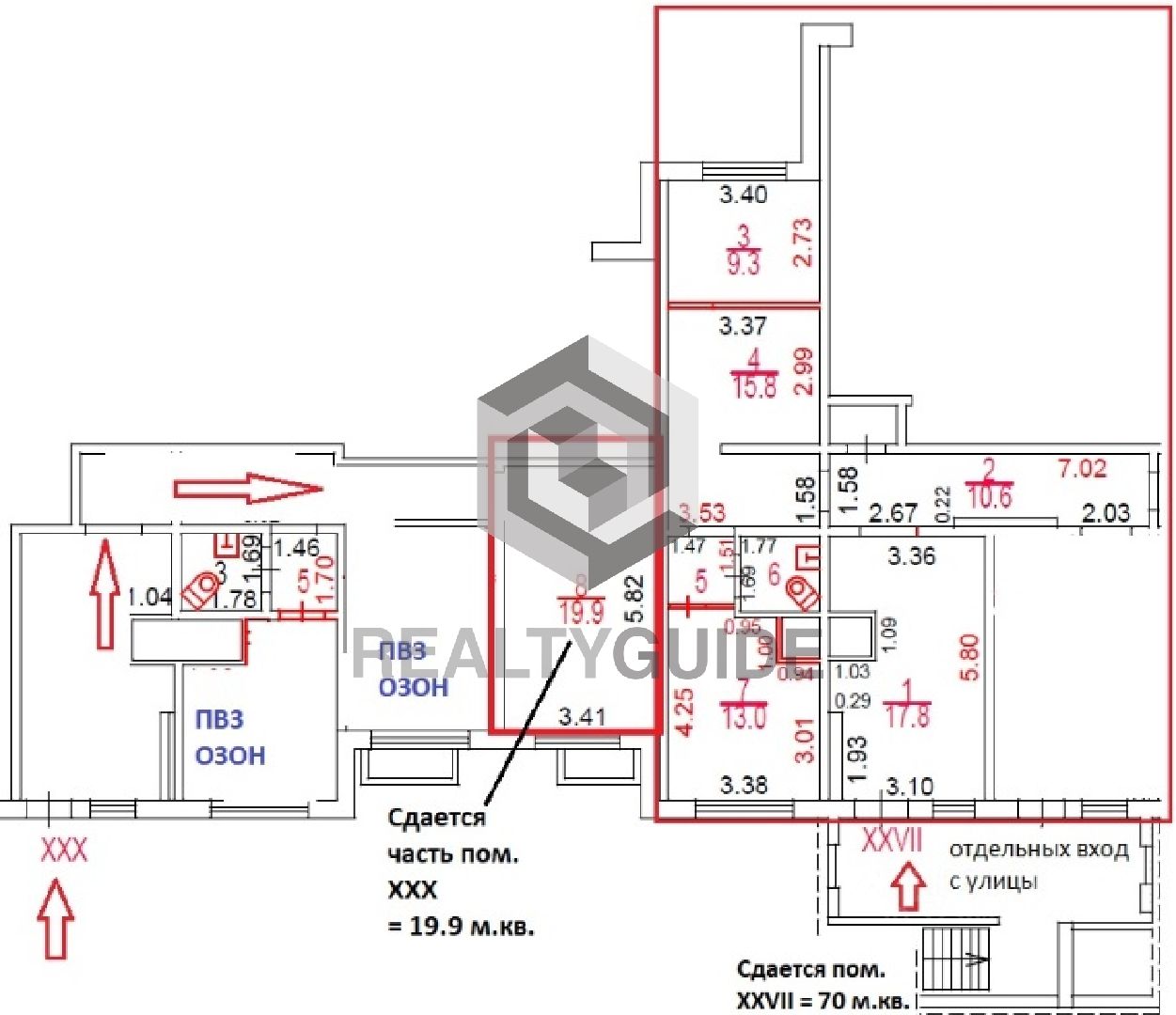эт 1, 70 м2 ПСН ( офис, ретейл, услуги ) планировка открытая.