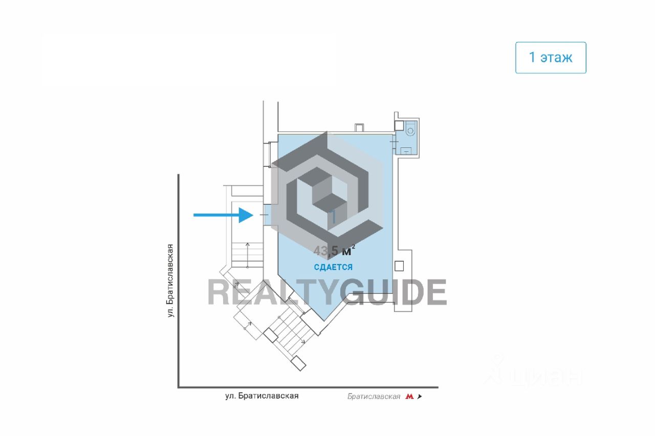 Street Retail помещение торгового или свободного назначения (ПСН) площадью 43,5 кв.м на 1 этаже жилого здания (встроенно-пристроенное помещение). Планировка — свободная (одним залом), высота потолков — 3,9 м. Отлично подойдёт под любой вид деятельности: торговое помещение, магазин, ресторан, кафе, аптека, салон красоты, банк, офис продаж, кофейня и др.