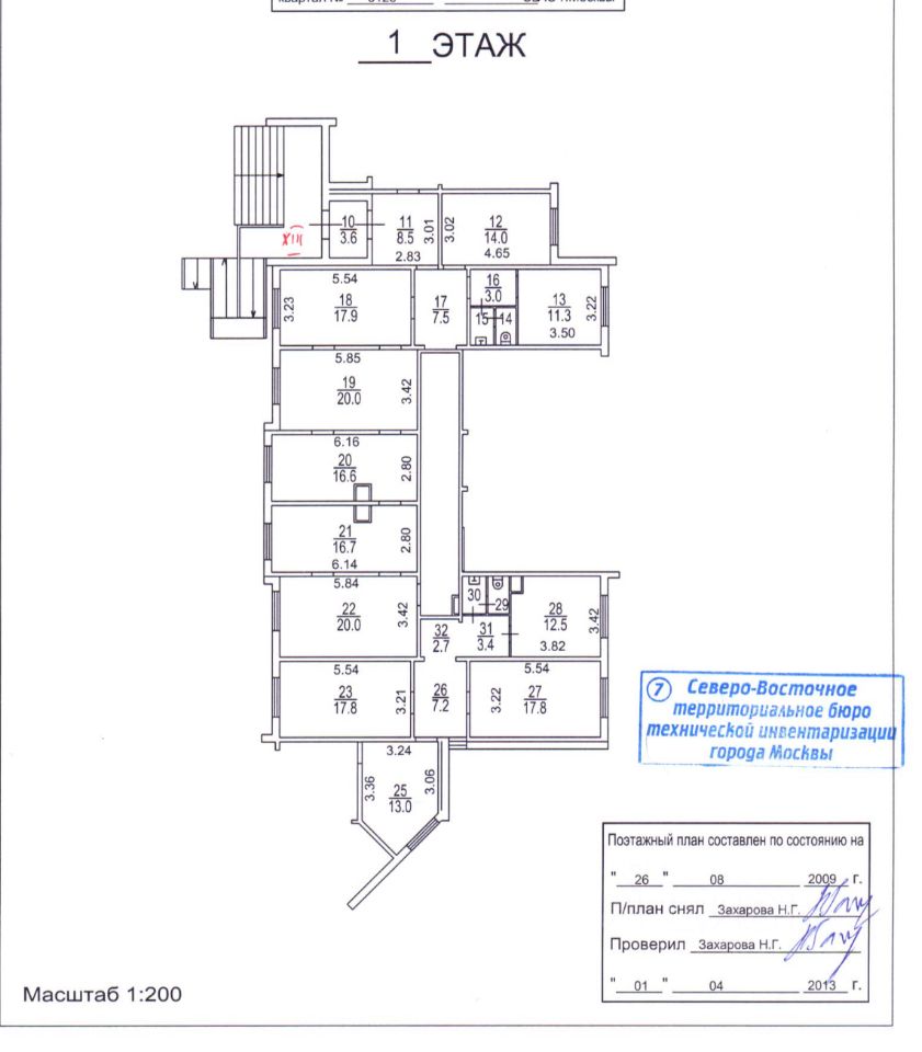 В помещении кабинетно коридорная планировка. Состоит из зоны ресепшена 8,5 м2, зоны ожидания 17,9 м2, сестринского кабинета (или кабинета глав врача) 11,3 м2, кухни 14 м2, восьми рабочих кабинетов 20 м2, 16,6м 2, 16,7 м2, 20 м2, 17,8 м2, 13 м2, 17,8 м2, 12,5 м2, а также 3 сан узлов и подсобки 1,6 м2. Высота потолков 2,65 м. Электроэнергия 34 кВт.