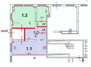Помещение 1.1. — выделенное на плане синим цветом — 44кв.м.