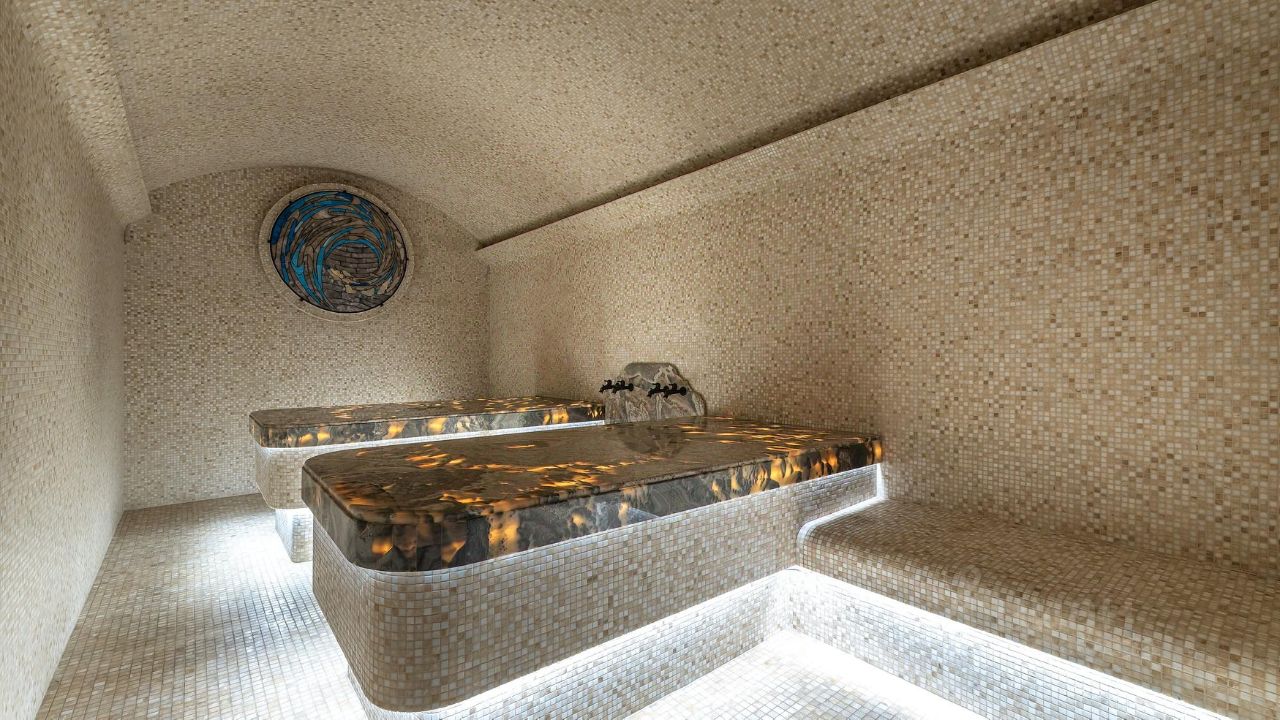 Планировка включает в себя ресепшн, массажную комнату, купель, сауну, парную, бассейн, душевые с бочками, санузлы, комнату отдыха, большую гостиную с выходом на кухню, отдельный выход для клиентов.