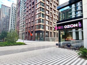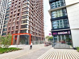 Соседний от помещения стилобат в соседней башне занял сетевой продуктовый супермаркет "Пятерочка", а в этой башне разместится фитнес-центр, что обеспечит высокий трафик мимо фасада жителей всего комплекса, в том числе от соседних башен.