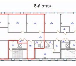 Планировка кабинетная: сан. узлы, ресепшен, серверная.
