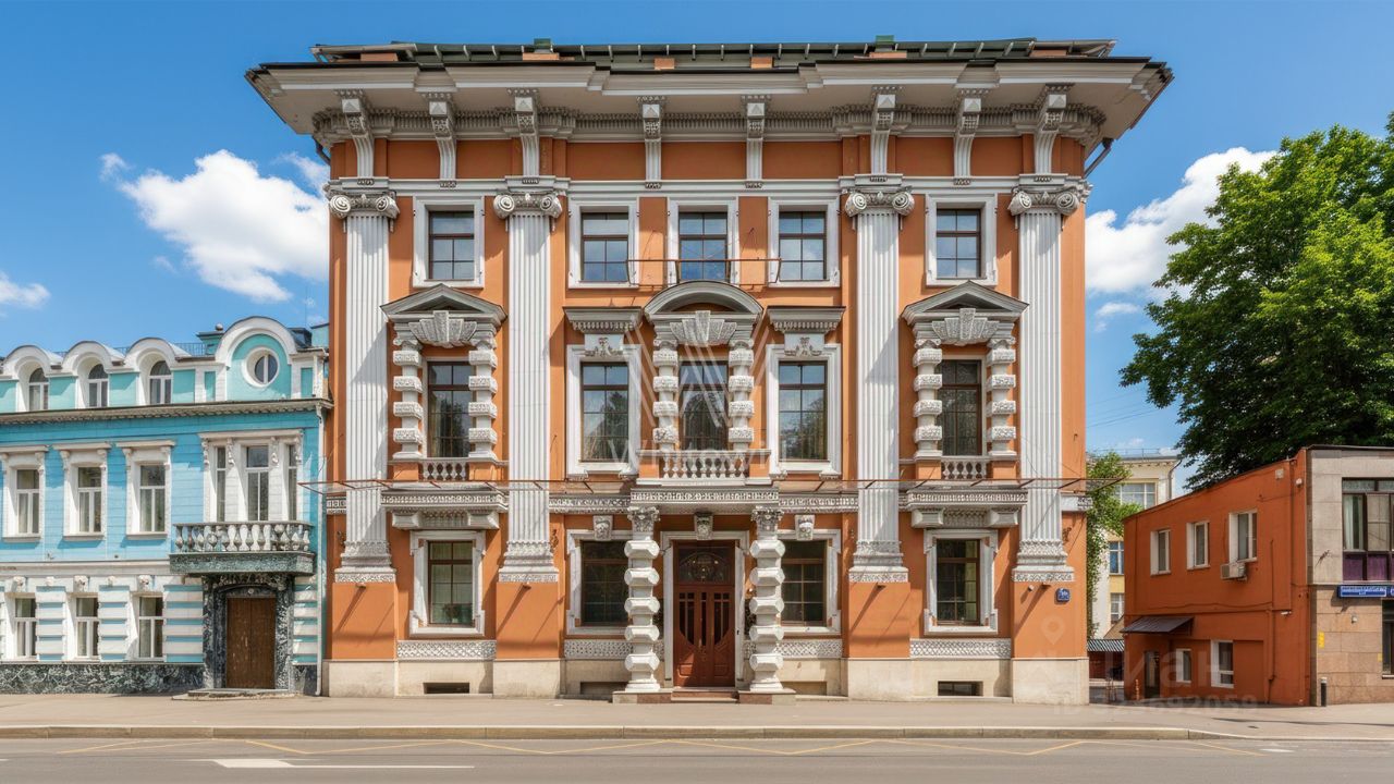 Трехэтажный особняк с цоколем и мансардой на Большой Почтовой улице в Басманном районе. Кирпичного цвета фасад выполнен в стиле классицизма, украшен белыми пилястрами и сандриками. Презентабельная входная группа расположена со стороны улицы. Внутри смешанная планировка, включающая в себя просторный холл, кабинеты различной площади и зону для руководства. Выполнен качественный ремонт, высота потолков до 4-х метров. Электрическая мощность составляет 300 кВт. Для удобства передвижения установлен лифт. За безопасность отвечают круглосуточная охрана с системой видеонаблюдения, противопожарная и охранная сигнализация. Со стороны двора предусмотрена общая парковка на 6 мест. Особняк подходит для размещения офиса или представительства компании.