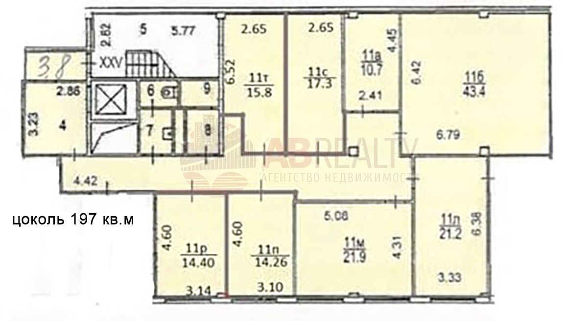 Цокольный этаж. Кабинетная планировка - 7 кабинетов, 3 из них с узкими окнами на улицу.