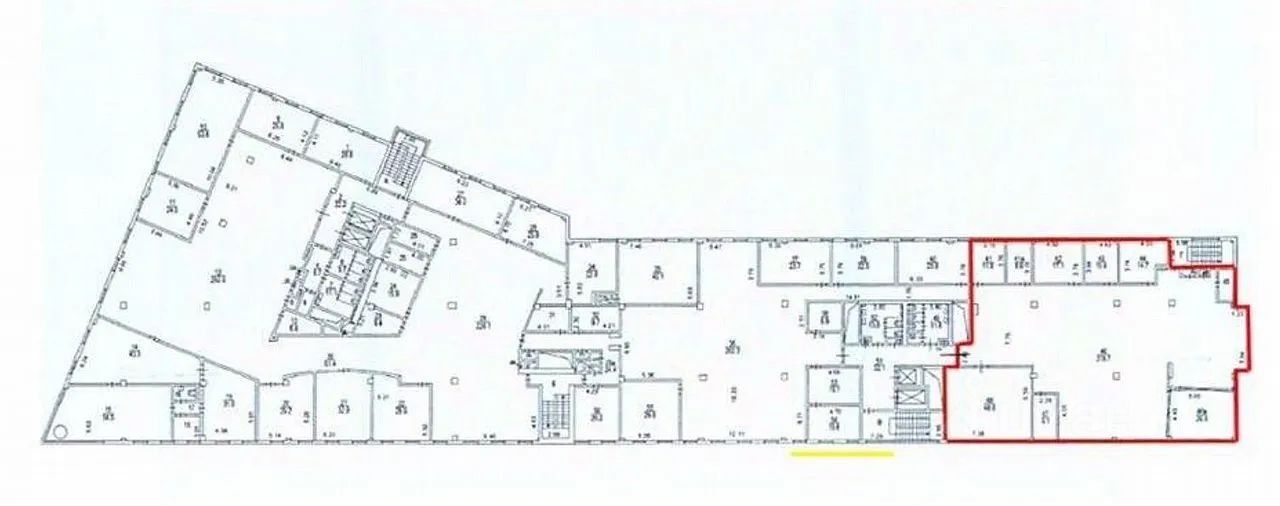 Смешанная планировка: кабинеты, open space, переговорные, серверная, сан.узлы в блоке.