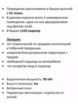 Прямая аренда (от года), минимальный срок аренды 60 месяцев, доступны арендные каникулы, предоплата за 1 месяц