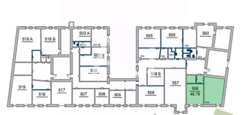 Состоит из 2 кабинетов, кухни (подсобного помещения) и входной зоны (см.поэтажный план в галерее объекта).