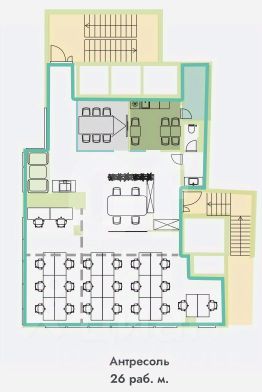 *Количество рабочих мест рассчитано автоматически: от 4,5 м2 на человека до 8 м2 на человека.