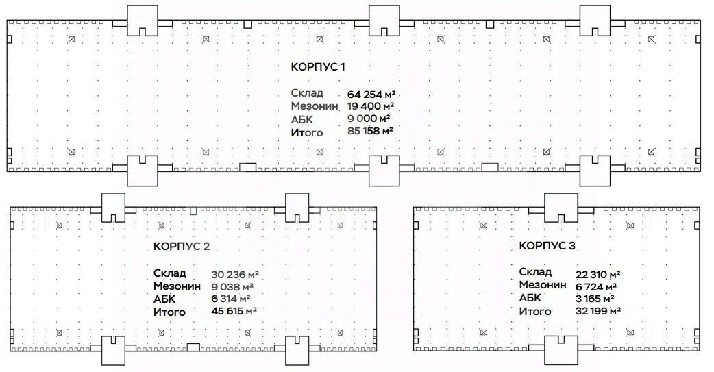 Общая площадь: 95 000 кв. м (включая офис и мезонин) (два корпуса)