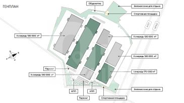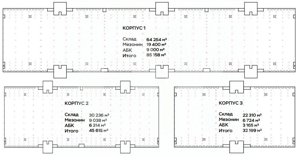 Общая площадь: 110 000 кв. м (включая офис и мезонин) (два корпуса)