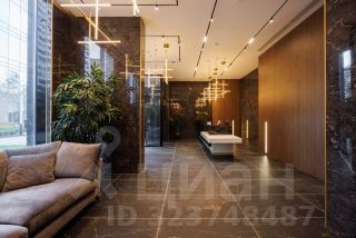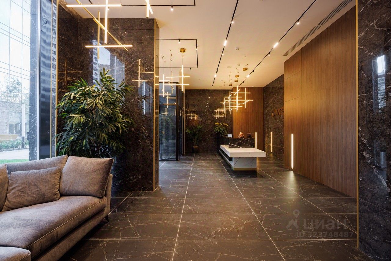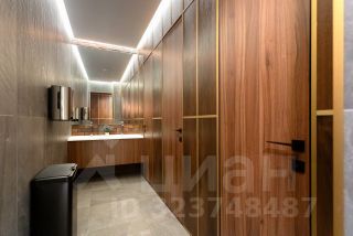 Отделка премиум-класса: дерево, керамогранит, стеклянные перегородки, встроенные светильники;