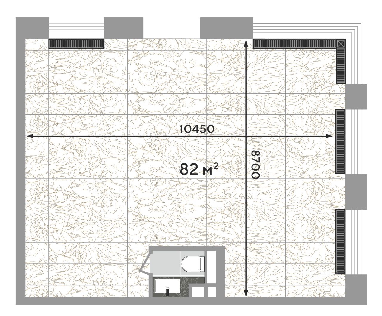 Предлагается просторное угловое помещение свободного назначения площадью 82 м² без отделки. Высота потолков 4,5 м, подведённая мощность 12,5 кВт и выведенные "мокрые" точки позволяют реализовать любой формат бизнеса.