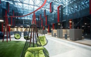 - это 8 дизайнерских атриумов с высотой потолков 8 метров, с удобными диванами, креслами и столами для нетворкинга, где можно проводить встречи и переговоры. В одном из атриумов расположен профессиональный теннисный корт!!!