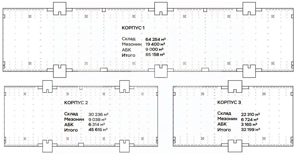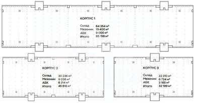 Площадь: 160 000 кв. м (включая офис и мезонин) (3 корпуса)