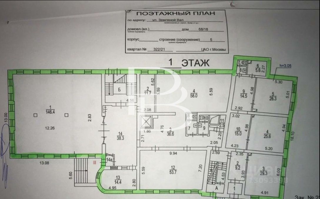 Общая площадь составляет 2650 кв.м. Планировка смешанная.