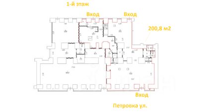 1-й этаж. 1-я линия домов. Отдельный вход с фасада и два со двора.